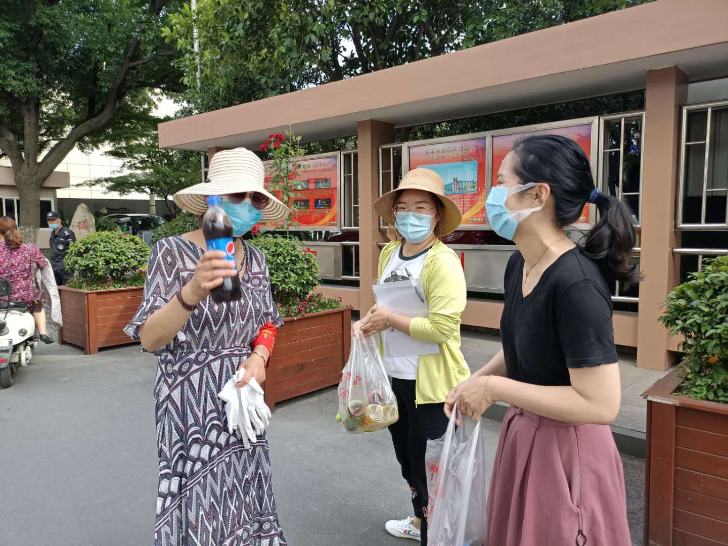 隨著高溫天的來臨,天氣愈發悶熱,幾個小時站下來,早已汗流浹背,許多人都已經戴不住口罩了,但市場相對人流密集,我們的工作人員還是堅持戴好口罩并勸導進入市場規范佩戴口罩,做好個人防護。有愛美的女職工戲謔地說上半張臉和下半張臉已經曬出色差了。